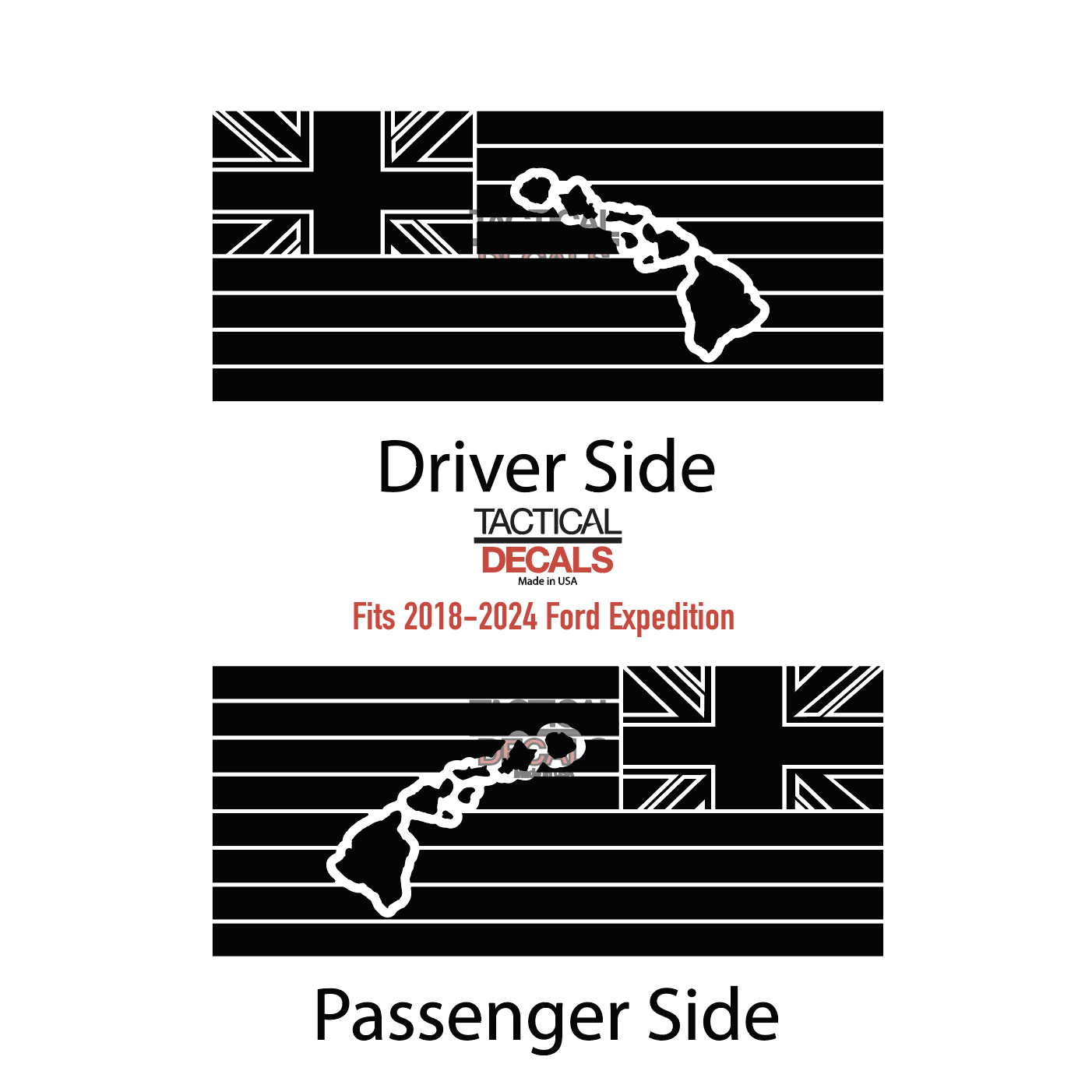 This is a custom designed State of Hawaii with Islands Flag Decals for a 2018-2024 Ford Expedition Rear Windows