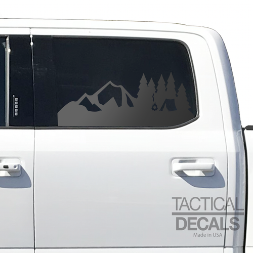 Camping Mountain Outdoor Scene Decal for 2015- 2020 Ford F-150 Windows - Matte Black
