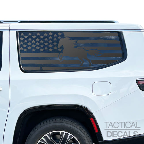 Distressed USA Flag with Horse Decals for 2022-2024 Jeep Grand Wagoneer L 3rd Windows - Matte Black