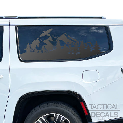 Mountains Scene Decals for 2022-2024 Jeep Grand Wagoneer L 3rd Windows - Matte Black