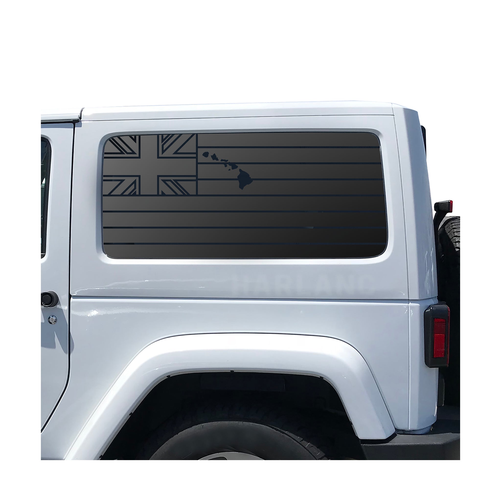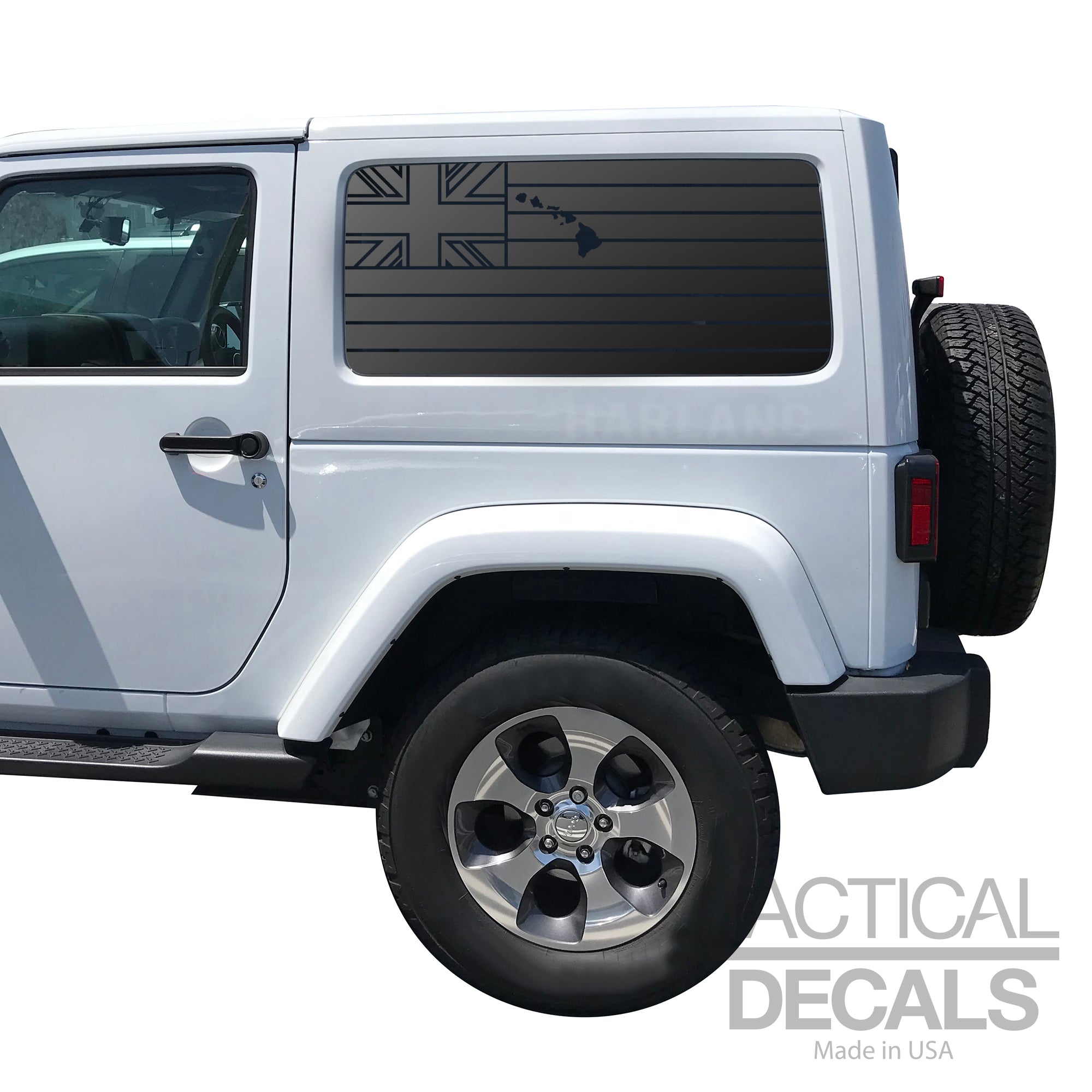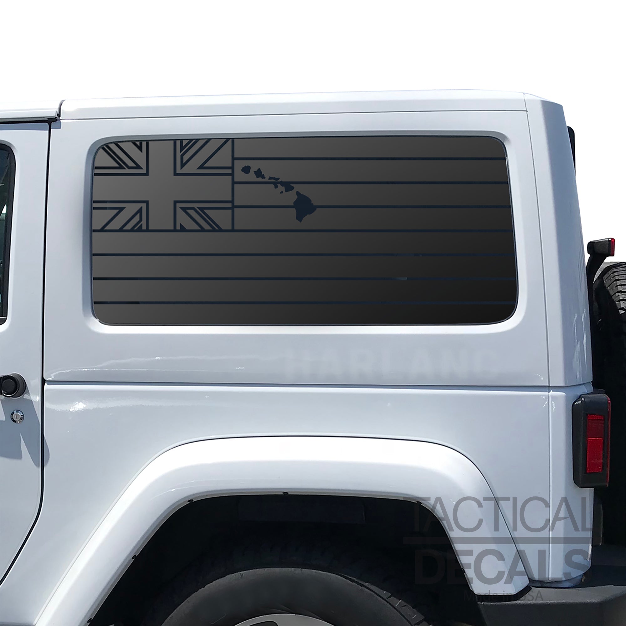 This is a custom designed State of Hawaii Flag Decal with Islands for a 2007-2025 Jeep Wrangler 2-Door