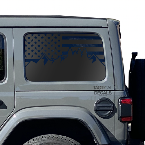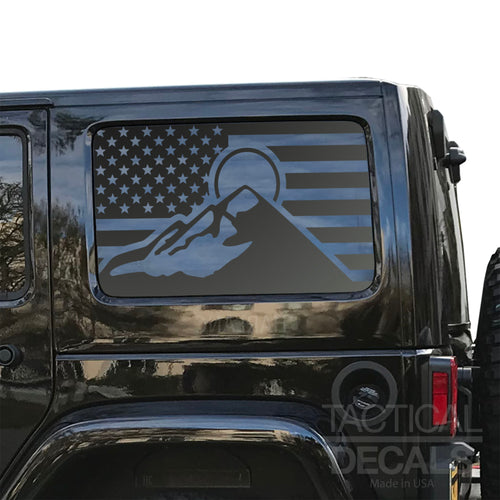 USA Flag with Mountain Scene Decal for 2007 - 2023 Jeep Wrangler 4 Door only - Hardtop Windows - Matte Black