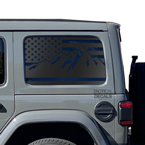USA Flag w/Mountain scene Decal for 2007 - 2023 Jeep Wrangler 4 Door only - Hardtop Windows - Matte Black