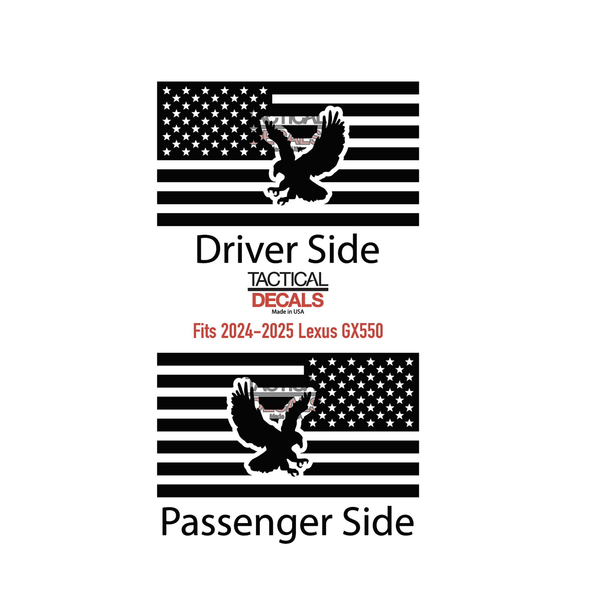 This is a custom designed USA Flag Decal with Eagle for a 2024-2025 Lexus GX550 Rear Window
